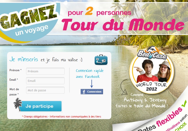 Lien pour participer : http://fr.bedycasa.com/tour-du-monde/gagne-un-tour-du-monde/
