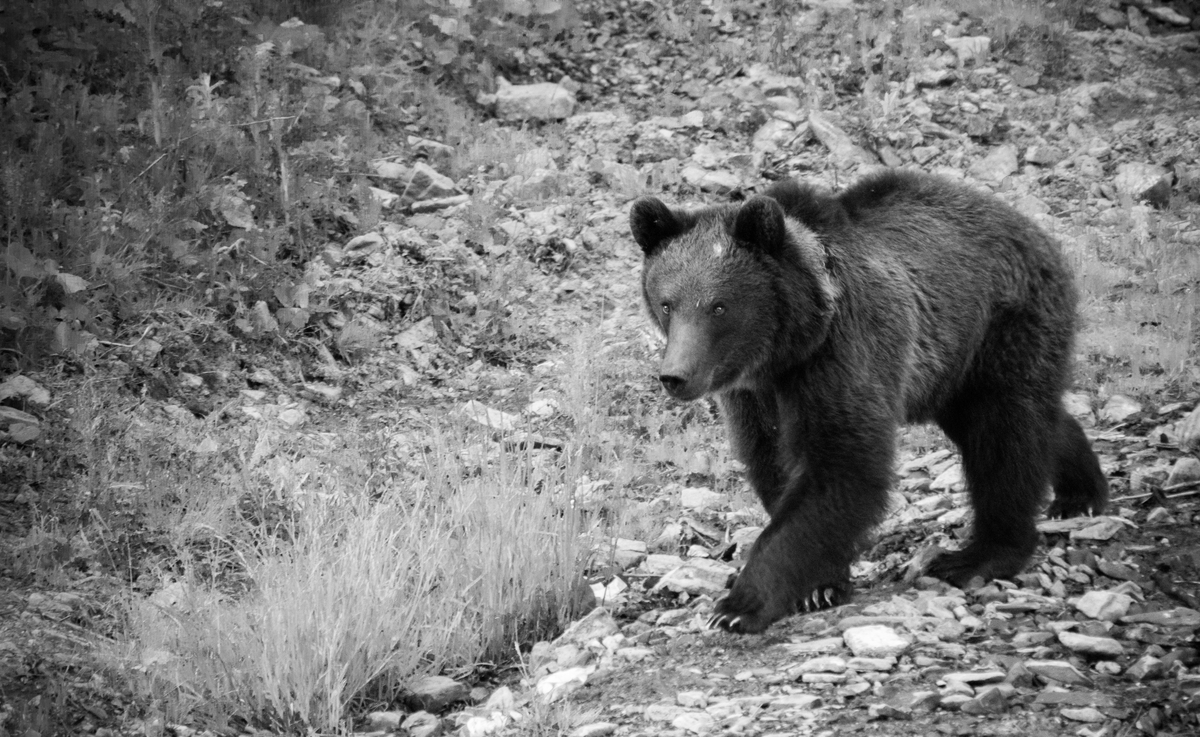 Ensuite, je me dis que je vais tester le mode vidéo et je commence (très maladroitement) à le filmer. Une poignée de seconde plus tard, Elena me dit : « Fais attention, un autre ours arrive sur toi. ». Je tourne la tête tout en filmant toujours mon jeune poilu (sauf qu’à la vision de la vidéo, je constaterai par la suite que je filmais le sol…) et je vois arriver ce que je pense être la maman de ma star du jour.